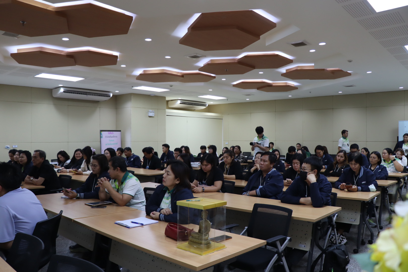 คุณวิลาวรรณ ชูแก้ว หัวหน้าสำนักงานเลขานุการคณะวิทยาศาสตร์ ศรีราชา บรรยายหัวข้อ “การบริหารจัดการสำนักงานดิจิทัล” พร้อมแลกเปลี่ยนเรียนรู้และตอบข้อซักถามอย่างใกล้ชิด