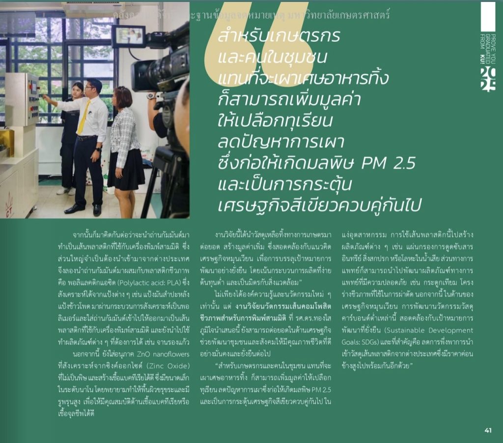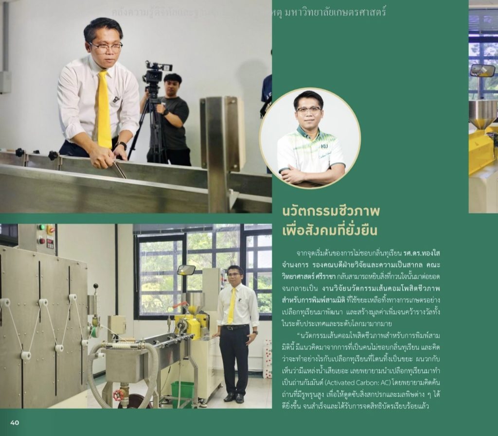 We are proud to share that our research project “Innovative the biocomposite filaments for 3D printing” has been selected as one of the Outstanding Research Works featured in KU, Who are we?, a special publication launched on the occasion of 2025 Kasetsart University’s Commencement Ceremony 🎓.