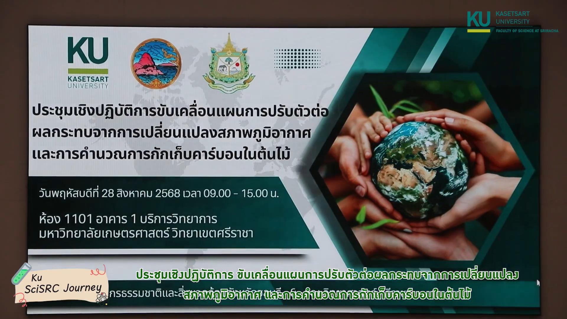 ประชุมเชิงปฏิบัติการ “ขับเคลื่อนแผนการปรับตัวต่อผลกระทบจากการเปลี่ยนแปลงสภาพภูมิอากาศ และการคำนวณการ คณะวิทยาศาสตร์ ศรีราชา มก.ศรีราชา ร่วมกับ สำนักงานทรัพยากรธรรมชาติและสิ่งแวดล้อม จ.ชลบุรี จัดประชุมเชิงปฏิบัติการ ‘ขับเคลื่อนแผนการปรับตัวต่อผลกระทบจากการเปลี่ยนแปลงสภาพภูมิอากาศ และการคำนวณการกักเก็บคาร์บอนในต้นไม้’